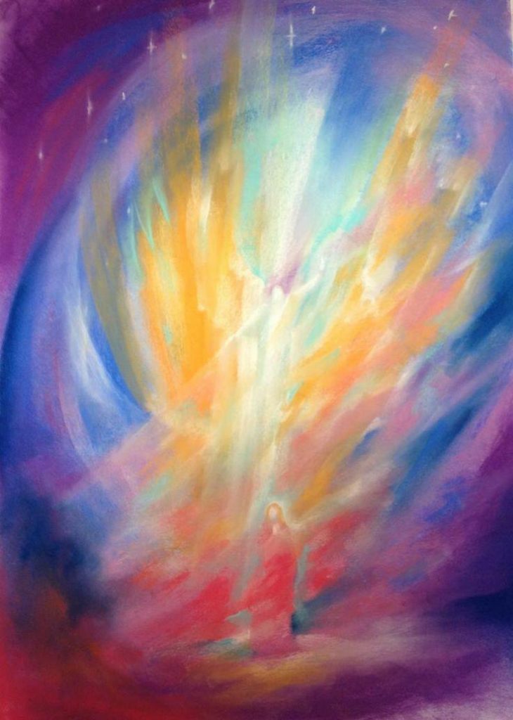 Al termine della meditazione serale, ispirati dalla vostra opera, scrivete una singola frase nel taccuino, creando quindi una singola immagine che si è risvegliata in voi. Questa frase verrà poi unita alle successive (dei prossimi giorni) andando a formare un vostro personale mantra sul quale mediteremo quotidianamente per fra la Pasqua e la Pentecoste.